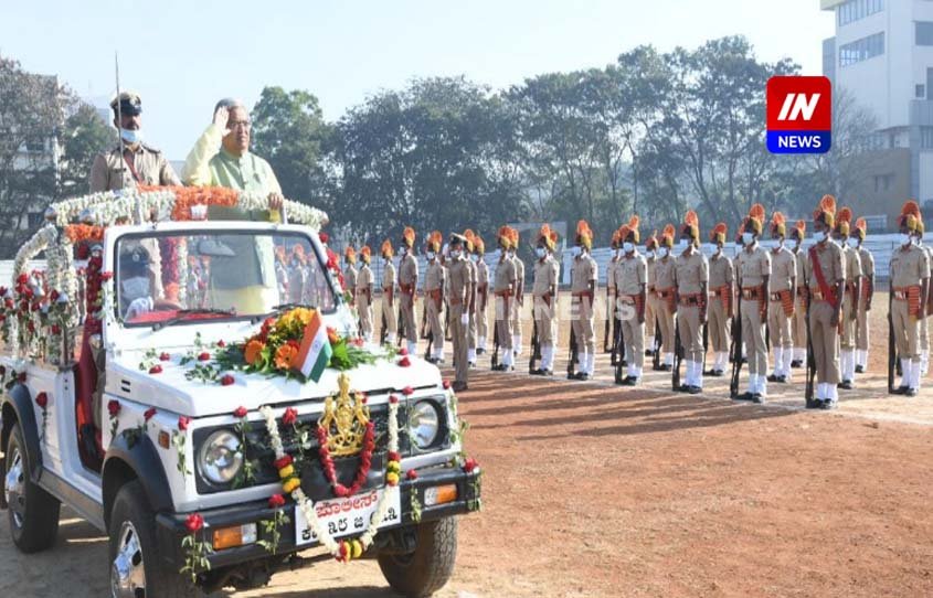 पोलीस विभागाकडून मानवंदना स्वीकारून गोविंद कारजोळ यांनी तिरंगा फडकविला. या कार्यक्रमात एनसीई, केएसआरपी, अबकारी, गृहरक्षक दलातर्फे आकर्षक पथसंचलन करण्यात आले.
