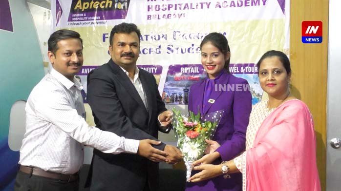बेळगावातील ऍपटेक एव्हिएशन अँड हॉस्पिटॅलिटी अकादमीत प्रशिक्षण पूर्ण करून हैदराबाद आंतरराष्ट्रीय विमानतळावर नोकरीसाठी निवड झालेल्या बेळगावच्या २ कन्या आणि त्यांच्या पालकांचा संस्थेतर्फे गौरव करून अभिनंदन करण्यात आले.