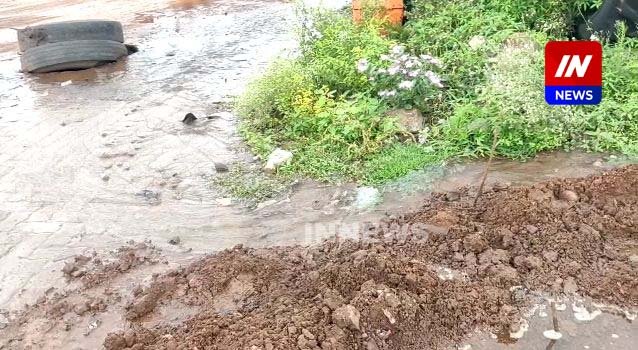 पावसामुळे विविध भागातील रस्ते, गटारी, खड्डे, नाले पाण्याने भरून वाहत आहेत. मात्र हुक्केरी शहरात पिण्याच्या पाण्याचा पाइप फुटून रस्त्यावर पाणी साचले आहे.