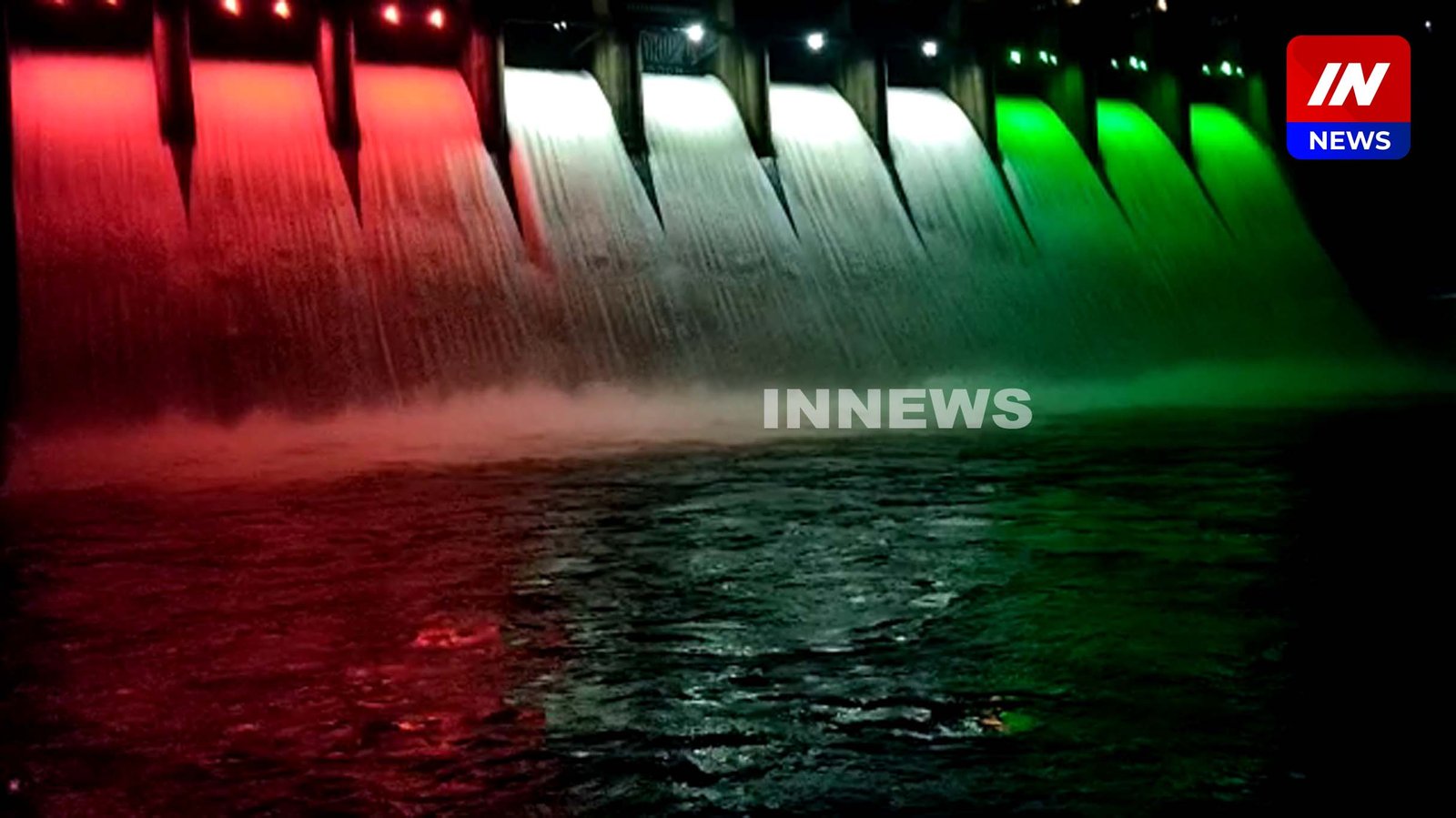 हुक्केरी तालुक्यातील हिडकल जलाशयाच्या राजा लखमगौडा जलाशयाला स्वातंत्र्याच्या अमृत महोत्सवानिमित्त तिरंगी रंगात सजविण्यात आले होते.
