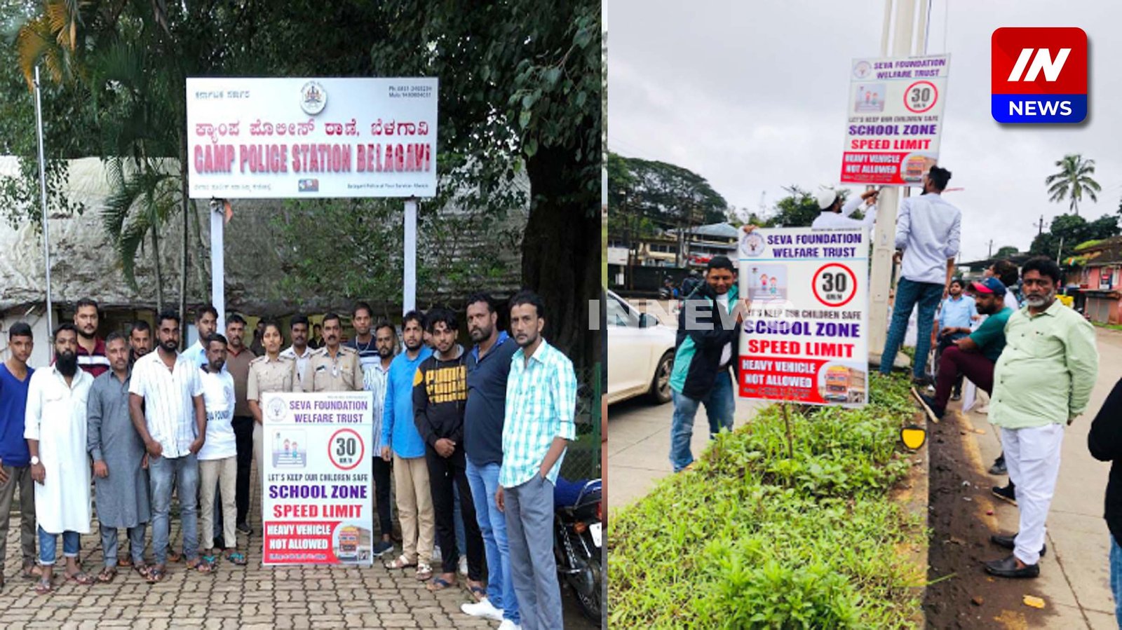 बेळगाव शहरात सेवा फौंडेशन वेल्फेअर ट्रस्टने शाळांजवळ वाहतूक जनजागृतीचे फलक लावून वाहनचालकांमध्ये जनजागृती करण्याचे काम हाती घेतले आहे.