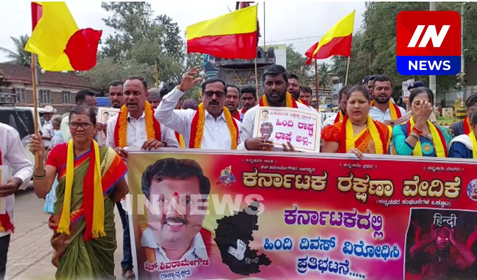 कर्नाटकात हिंदी दिन साजरा केला जाऊ नये हि भूमिका ठेवून कर्नाटक रक्षण वेदिकेच्या शिवरामगौडा गटाने आज बेळगावमध्ये आंदोलन केले. संविधानातील सर्व भाषांना समान दर्जा द्यावा, सर्व भाषिकांना शिक्षण आणि नोकरीत समान स्थान दिले जावे, कर्नाटकातील हिंदी भाषेतील कार्यक्रम बंद करण्यात यावेत, अशा मागण्या करत राणी चन्नम्मा चौकात करवेने निदर्शने केली.यासंदर्भात करवे कार्यकर्ते महांतेश यांनी सांगितले, १४ सप्टेंबर रोजी हिंदी दिन साजरा केला जातो. मात्र कर्नाटकात याविरोधात काळा दिन पाळण्यात येतो. केंद्र सरकार हिंदी भाषिकेतर राज्यांवर हिंदी लादत असून याचा कर्नाटकातील कोट्यवधी जनता निषेध करत असल्याचे ते म्हणाले. ()