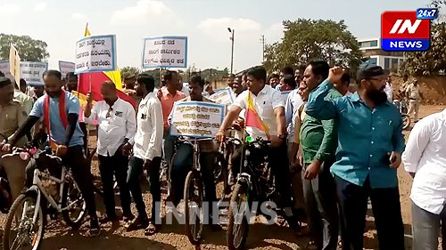 परिवहन कर्मचाऱ्यांना शासकीय कर्मचाऱ्यांप्रमाणे वागणूक मिळावी, ६ व्या वेतन आयोगानुसार वेतनाची अंमलबजावणी करावी आदी मागण्यांसाठी कर्नाटक राज्य मार्ग परिवहन कर्मचारी संघटनेच्या पदाधिकाऱ्यांनी शनिवारी बेळगाव मध्यवर्ती बसस्थानकावर सायकल रॅली काढली. यावेळी हातात फलक घेऊन आपल्या मागण्या पूर्ण कराव्यात अशी मागणी करण्यात आली.