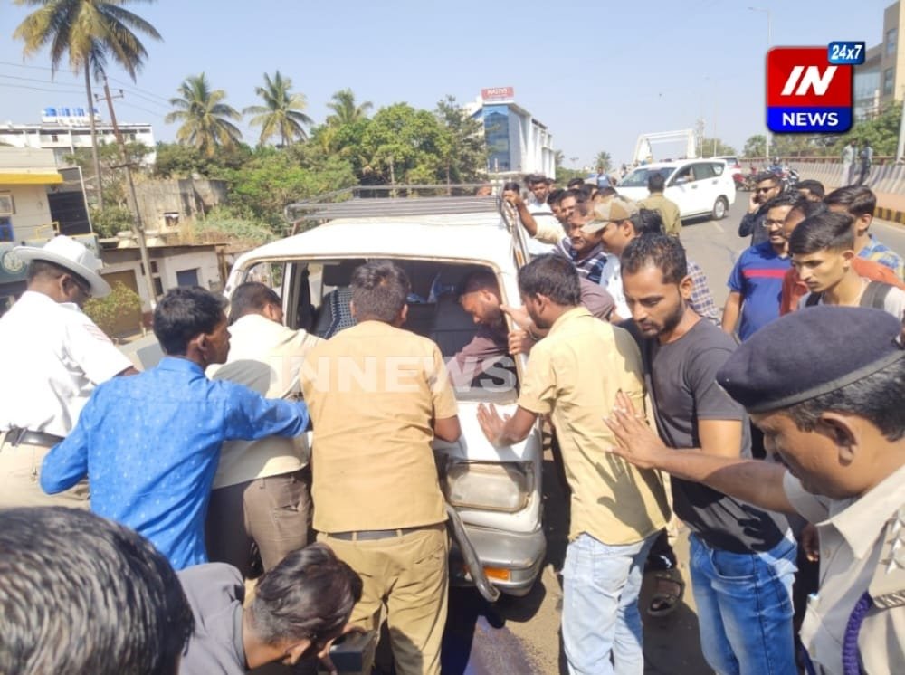 बेळगावातील टिळकवाडीतील तिसऱ्या रेल्वेगेट नवीन पुलावर आज दुपारी भरधाव मारुती व्हॅनने दुचाकीचालकाला ठोकरल्याने भीषण अपघात झाला. ठोकरीनंतर दुचाकीचालक पुलावरून उडून पडल्याने गंभीर जखमी झाला आहे.