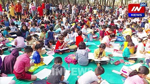 होय, गेल्या सुमारे वीस वर्षांपासून आ. अभय पाटील संपूर्ण बेळगावातील बच्चे कंपनीच्या चित्रकलाविष्कारांना प्रोत्साहन देण्याच्या हेतूने चित्रकला आयोजित करत आहेत. तीच परंपरा पुढे चालवत आज रविवारी सकाळी टिळकवाडीतील व्हॅक्सिन डेपोच्या भव्य मैदानात त्यांनी यंदाच्या चित्रकला स्पर्धेचे आयोजन केले होते. निसर्गाच्या सानिध्यात स्वच्छ, शुद्ध वातावरणात हजारो बालक-बालिकांनी या स्पर्धेत सहभागी होऊन कलाविष्कार प्रकट केला. पेन्सिल, ब्रशच्या साहाय्याने शुभ्र कागदावर आरेखन करत विविध प्रकारची निसर्गचित्रे, प्राणी, पशू, पक्षी रेखाटताना मुले दंग झाली होती.