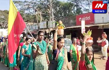 खानापूर नगरपंचायत सदस्या मेघा कुंदरगी यांच्या नेतृत्वाखाली मिरवणूक शहरातील प्रमुख मार्गावरून मिरवणूक काढण्यात आली . मंगलकलश डोक्यावर घेऊन शेकडो महिला या मिरवणुकीत सहभाग झाल्या होत्या . दीपप्रज्वलन करून मान्यवरांनी या कन्नड साहित्य संमेलनाचे उदघाटन केले .