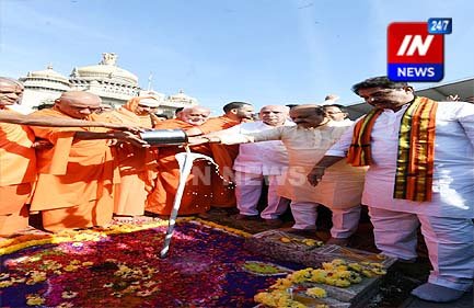मुख्यमंत्री बसवराज बोम्मई यांनी आज विधानसौधसमोर श्री जगज्योती बसवेश्वर आणि नाडप्रभू केम्पेगौडा यांच्या पुतळा उभारणीसाठी भूमिपूजन केले.