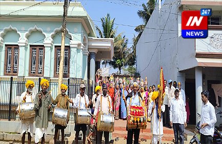 संघाचे अध्यक्ष बाबुराव बाळेकुंद्री यांच्या हस्ते चौकटीची पूजा करुन मिरवणुकीला चालना देण्यात आली .नंतर या चौकटीची गावभर ढोलवाद्यासह मिरवणुक काढून विधिवत पुजनाने चौकट उभारण्यात आदी