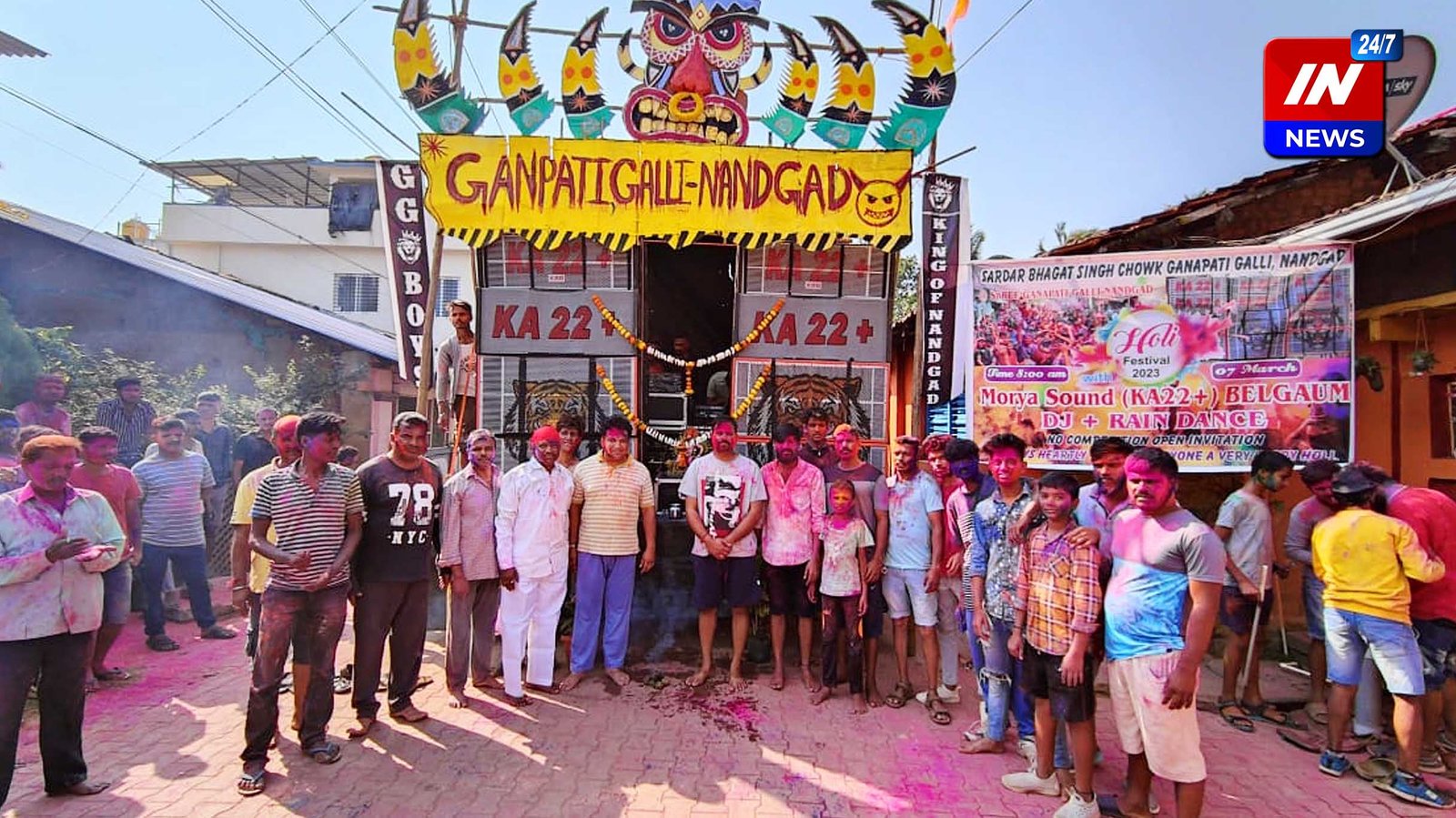 नंदगडच्या गणपत गल्लीत भव्य स्टेज तयार करून परंपरेनुसार होळीचा उत्सव साजरा करण्यात आला.