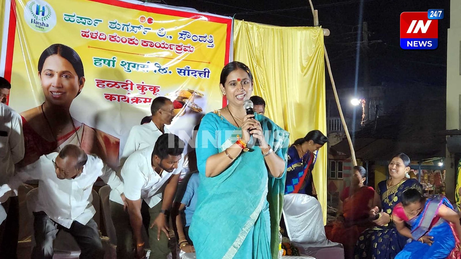 कंग्राळी बीके गावात आयोजित हळदी कुंकू कार्यक्रमात सहभागी झालेल्या लक्ष्मी हेब्बाळकर यांनी कार्यक्रमाचा शुभारंभ केला .