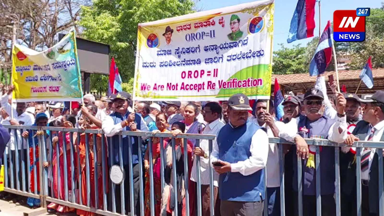 वन रँक वन पेन्शन-2 मधील वेतन, निवृत्तीवेतन आणि विधवा वेतनातील तफावती दूर करण्याच्या मागणीसाठी बेळगावात आज निवृत्त सैनिकांनी जिल्हाधिकारी कार्यालयासमोर आंदोलन छेडले. यावेळी राष्ट्रपती, पंतप्रधान आणि संरक्षण मंत्र्यांच्या नावाचे निवेदन जिल्हाधिकाऱ्यांना देण्यात आले.