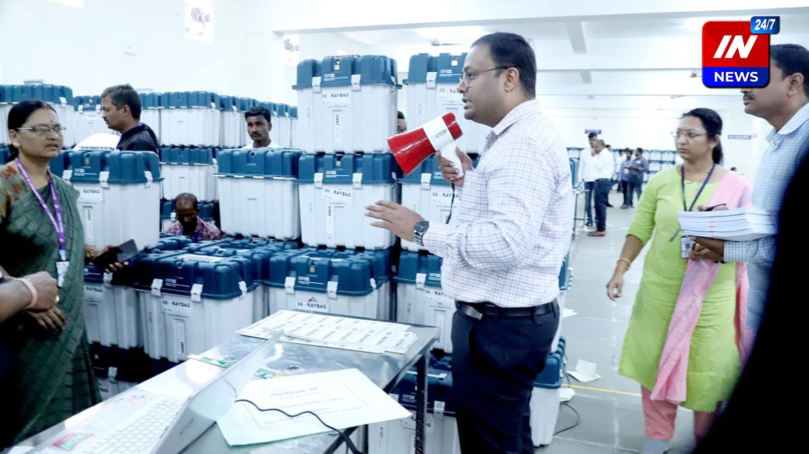 जिल्हाधिकारी नितेश पाटील यांनी स्वत: काही काळ प्रत्येक मतदारसंघातील स्वतंत्र काउंटरवर जाऊन इलेक्ट्रॉनिक मतदान यंत्रांचे अनुक्रमांक तपासले व त्यांचे वाटप केले.