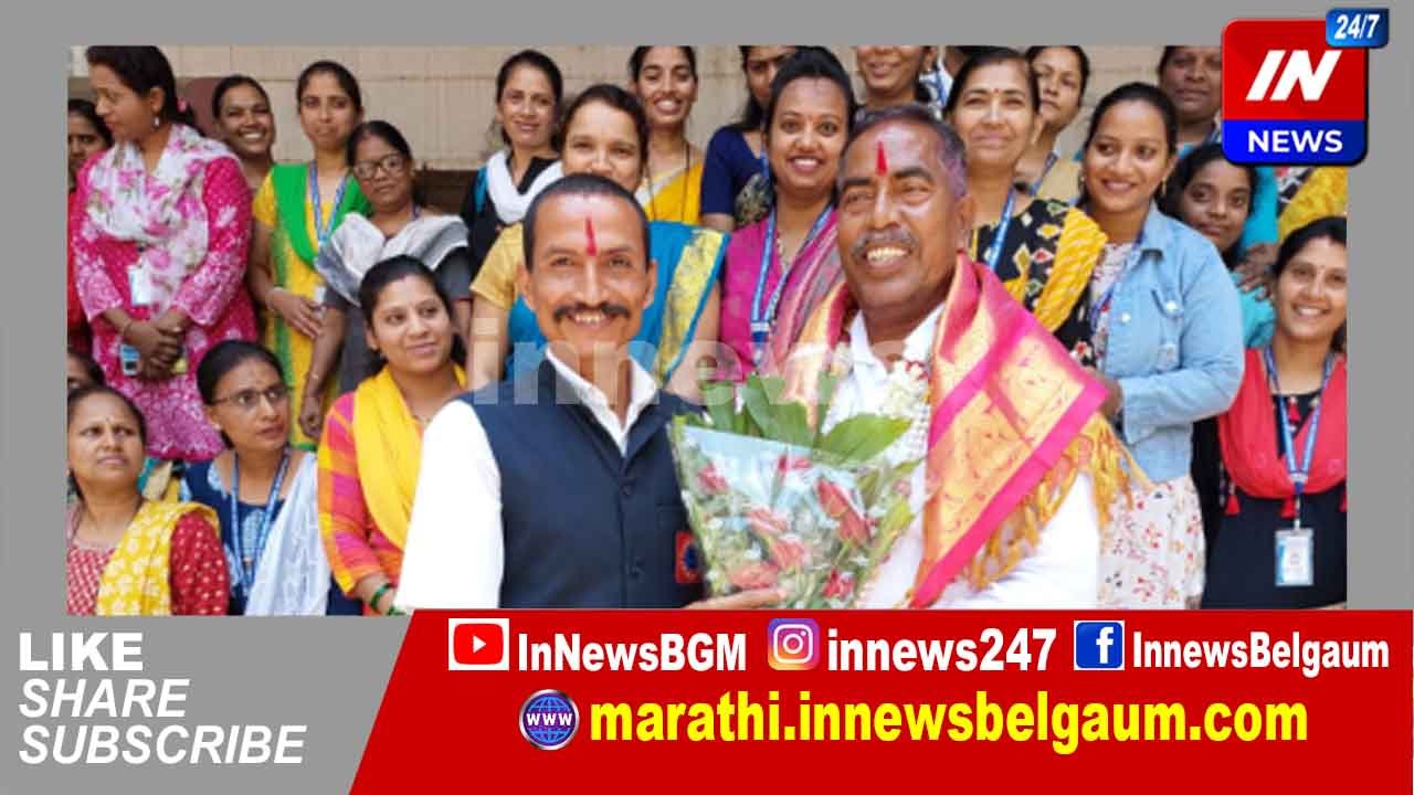 शांतिनिकेतन शाळेच्या वतीने मनिषा हलगेकर यांच्या नेतृत्वाखाली नूतन आमदार विठ्ठल हलगेकर यांचा सत्कार करण्यात आला.