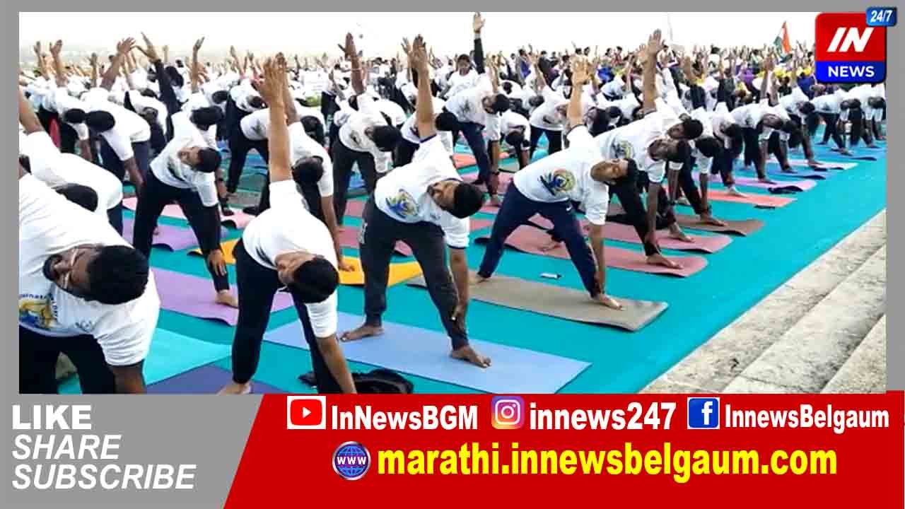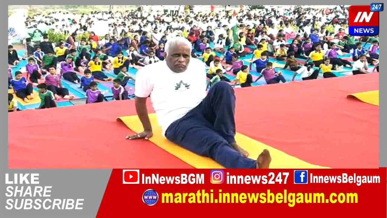 जिल्हा प्रशासन, जिल्हा पंचायत यांच्या संयुक्त विद्यमाने आज, बुधवारी नवव्या आंतरराष्ट्रीय योग दिनानिमित्त सुवर्ण विधान सौधच्या पश्चिम दरवाजाच्या पायऱ्यांसमोर आयोजित सामूहिक योगासन कार्यक्रमाचे उदघाटन राज्यसभा सदस्य इरण्णा कडाडी यांच्या हस्ते झाले. बेळगाव महानगर पालिका, जिल्हा आयुष विभाग, महर्षी योग हेल्थ फाउंडेशन आणि विविध योग संस्था, योगसाधकांच्या सहयोगाने हा कार्यक्रम झाला.