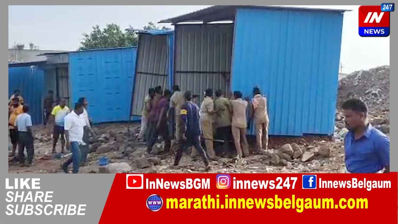 बेळगाव जिल्ह्यातील चिक्कोडी शहरातील अंकली खुटजवळ सार्वजनिक बांधकाम विभागाच्या सुमारे 5 एकर जागेत बेकायदेशीरपणे बांधलेली दुकाने व घरे जेसीबीने रिकामी करण्यात आली.