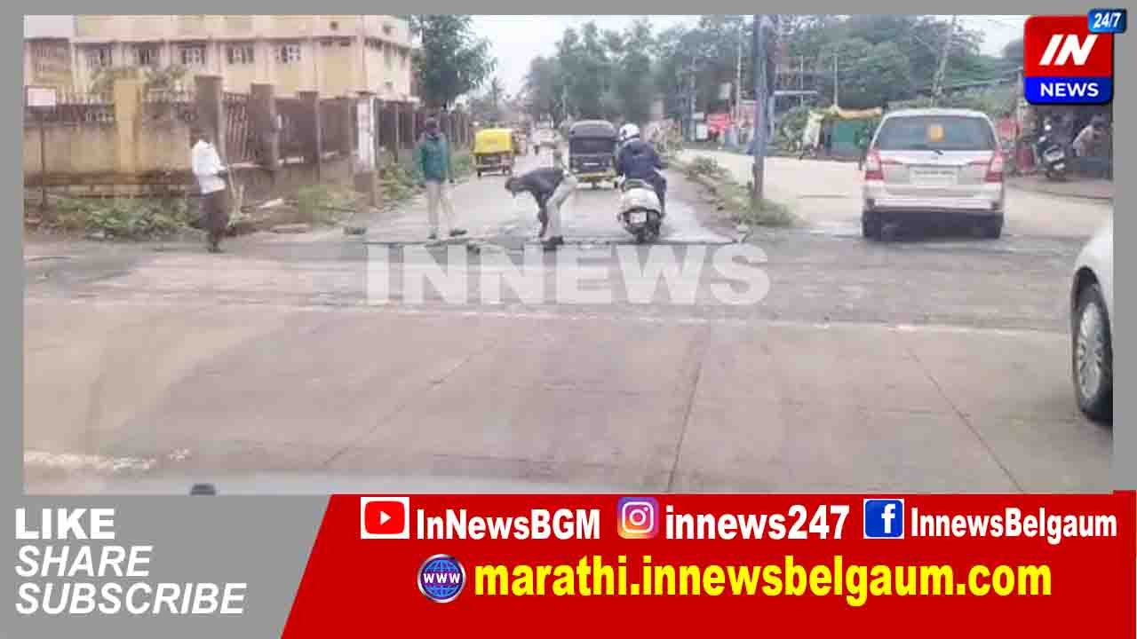 व्हॉइस ओव्हर : शहरातील गोकुळ रोडवरील होसूर डेपोसमोरील सुचिरायू हॉस्पिटलकडे जाणाऱ्या रस्त्यावरून हजारो वाहनांची वर्दळ असते . या संदर्भात आज सकाळी येथे ड्युटीवर आलेल्या पोलीस कर्मचाऱ्यांनी वाहनधारकांचे या खड्डेमय रस्त्यावरून जाताना होणारे हाल पाहून , पाहून स्वत:हून ते खड्डे बजावल्याचे दृश्य नागरिकांनी आपल्या मोबाईल कॅमेऱ्यात कैद केले आहे.