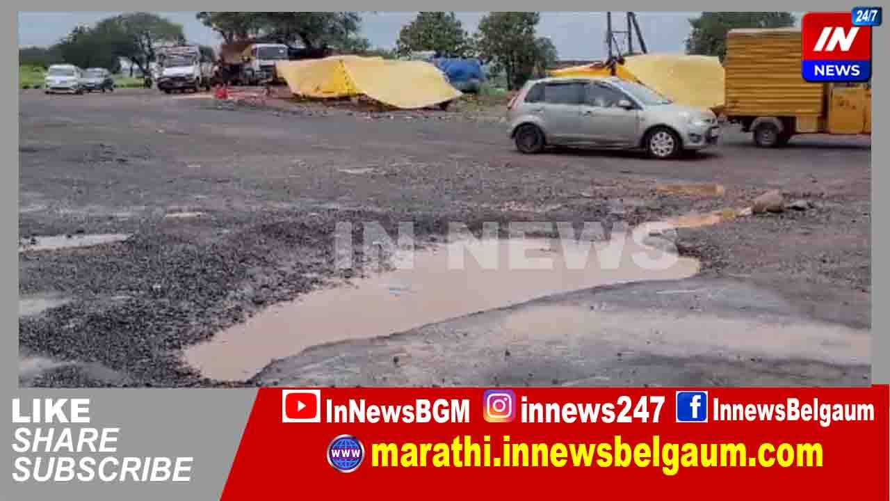 बेळगावातील येडियुरप्पा रोडवरील अलारवाड ब्रिजजवळील रस्त्यावर मोठमोठे खड्डे पडले आहेत. त्यामुळे वाहनचालकांना त्रास होत आहे.