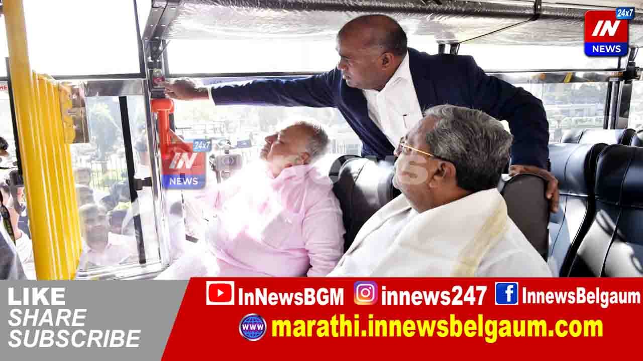मुख्यमंत्री सिद्धरामय्या, उपमुख्यमंत्री डीके शिवकुमार आणि परिवहन मंत्री रामलिंगा रेड्डी यांनी आज हिरवे निशाण दाखवून कर्नाटक राज्य मार्ग परिवहन महामंडळाच्या ताफ्यात दाखल झालेल्या 100 नवीन अश्वमेध क्लासिक बसचे उद्घाटन केले.