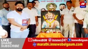 राजा वीर मदकरी यांच्या स्मृतिदिनानिमित्त त्यांच्या प्रतिमेचे पूजन करून कन्नड आंदोलक श्रीनिवास ताळूकर यांनी वीर मदकरी यांच्याविषयी माहिती दिली.
