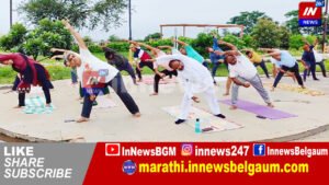 बेळगाव येथील कणबर्गी तलावाशेजारील उद्यानात रामतीर्थ नगर रहवासी संघ आणि सुरेश यादव फाऊंडेशन यांच्या संयुक्त विद्यमाने 10 वा आंतरराष्ट्रीय योग दिन साजरा करण्यात आला.