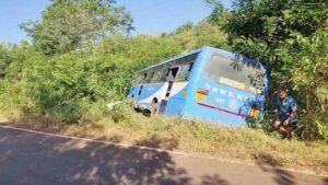 नावगे : वेगावरील नियंत्रण सुटल्याने बस पलटली! सुदैवाने मोठा अनर्थ टळला