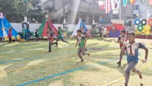 मुख्याध्यापक सौ. सरोजा सदलगे यांनी खेळाचे आपल्या दैनंदिन आयुष्यातील महत्त्व सांगून मुलांना मार्गदर्शन केले. पूर्वप्राथमिक वर्गाच्या मुलांनी ताली योगा सादर केली.त्यानंतर पळण्याची , हम्प्टी डंमटी सायकल स्पर्धा, अडथळ्यांची आकर्षक स्पर्धा,तसेच प्राथमिक व माध्यमिक वर्गानी लिंबू चमचा, रीले, पळण्याची स्पर्धा अशा विविध क्रीडा स्पर्धांचे धमाकेदार दर्शन घडवले.