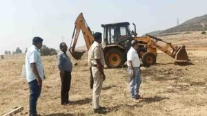 बेळगावातील पीरणावाडी येथे निर्माण झालेल्या अनधिकृत लेआउटची बुडाच्या अधिकाऱ्यांनी पोलिस सुरक्षेत हटविली.