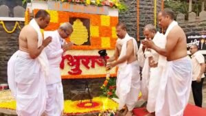 याठिकाणी धर्मवीर संभाजी महाराजांच्या मूर्तीला अभिषेक करून पुष्पहार अर्पण करण्यात आला. तसेच मंत्रोच्चारासह त्यांची प्रतिकात्मक चिता तयार करून विधीवत पूजन आणि दहन करण्यात आलं. या विधीचे पौरोहित्य श्री छत्रे गुरुजी यांनी केलं.