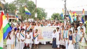 त्यानंतर मिरवणूकीला सुरवात झाली.महिलांनी डोक्यावर कलश घेऊन मिरवणुकीत सहभागी झाल्या होत्या. मिरवणूकिचे गल्लो गल्ली स्वागत करण्यात आले. व णमोकार महामंत्र म्हणन्यात आला. कार्यक्रमाच्या अध्यक्ष स्थानी संजीव अक्की होते. यावेळी एम. टी. पाटील, नेमीनाथ चौगला,नूतन मजगावी, महावीर पाटील, पारिसनाथ करडी, हिराचंद कलमणी, दयानंद पाटील,बसवंत पाटील, येगप्पा नरसीगणावर, जयपाल चौगला, राजकुमार पाटील, बसवराज चौगले व देवराज अर्स कॉलनी आणि के एच बी कॉलनी येथील महिला मोठ्या संख्येने उपस्थित होत्या.