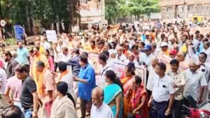 सीईटी परीक्षेदरम्यान विद्यार्थ्यांच्या गळ्यातील जानवे काढलेल्या धोरणाचा निषेध करत बेळगाव जिल्ह्यातील संपूर्ण ब्राह्मण समाजाने मंगळवारी बेळगावमधील राणी चन्नम्मा चौकात मानवी साखळी धरून निषेध व्यक्त केला.