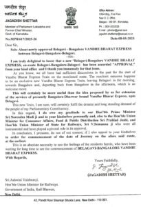 तसेच, लवकरात लवकर ही सेवा सुरू करण्यासाठी तारीख निश्चित करून बेळगाव जिल्ह्यातील नागरिकांना सुविधा उपलब्ध करून द्यावी, अशी विनंती त्यांनी केंद्रीय रेल्वे मंत्रालयाला केली आहे.