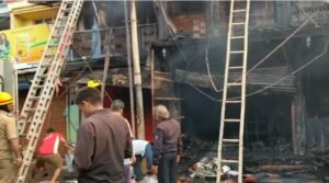 बेळगावातील कांदा मार्केट परिसरात आज पहाटेच्या सुमारास भीषण आग लागून सुमारे दोन दुकाने पूर्णपणे भस्मसात झाली आहेत. या आगीत लाखो रुपयांचे नुकसान झाल्याचा प्राथमिक अंदाज वर्तवण्यात येत आहे. अग्निशमन दलाच्या अथक प्रयत्नांनंतर सुमारे पाच तासांनी आगीवर नियंत्रण मिळवता आले.