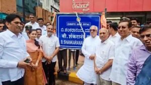 आज बेळगाव जिल्ह्याचे माजी खासदार, दिवंगत बी. शंकरानंद यांच्या जन्मशताब्दीनिमित्त बेळगाव शहराच्या क्लब रोड चे नामकरण आणि पुतळा उभारणीचा कार्यक्रम मोठ्या उत्साहात पार पडला. बी. शंकरानंद यांचे सुपुत्र प्रदीप कणगली यांच्या अध्यक्षतेखाली झालेल्या या समारंभात बेळगावचे महापौर मंगेश पवार, चिकोडीच्या खासदार प्रियांका जारकीहोळी, उत्तरचे आमदार आसिफ सेठ, दक्षिणचे आमदार अभय पाटील, उपमहापौर वाणी जोशी, माजी खासदार रमेश कट्टी, माजी आमदार फिरोज सेठ, माजी महापौर सविता कांबळे, नगरसेवक संदीप जिरग्याळ यांच्यासह इतर मान्यवर उपस्थित होते. त्यांच्या उपस्थितीत क्लब रोडचे नामकरण ‘बी. शंकरानंद मार्ग’ असे करून नामफलकाचे अनावरण करण्यात आले. त्यानंतर, बी. शंकरानंद यांच्या पुतळा उभारणी कामासाठी कोनशिला समारंभ पार पडला.