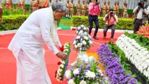 राज्याच्या प्रगतीसाठी महत्त्वाच्या असलेल्या शांतता आणि सुव्यवस्थेचे रक्षण करण्यात पोलीस दल यशस्वी ठरले आहे, ज्याचे श्रेय पोलीस विभागालाच जाते, असे मुख्यमंत्री सिद्धरामय्या यांनी पोलीस स्मरण दिनानिमित्त हुतात्मा पोलीस अधिकारी आणि कर्मचाऱ्यांप्रति शोक व्यक्त करताना म्हटले. अनैतिक ‘पोलिसगिरी’सोबतच अमली पदार्थांच्या विळख्यालाही ब्रेक लागला असून, या कामगिरीचे कौतुक करताना त्यांनी हे काम अधिक प्रभावीपणे करण्याची गरज व्यक्त केली. तसेच, राज्यातील अनुसूचित जाती आणि जमातींवरील अत्याचार रोखण्यासाठी DCRE पोलीस ठाणी कार्यान्वित करण्यात आली असून, संविधानात्मक हक्क आणि मूल्यांचे संरक्षण करण्यासाठी ही ठाणी प्रभावीपणे काम करतील, अशी अपेक्षा त्यांनी व्यक्त केली.