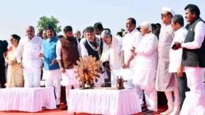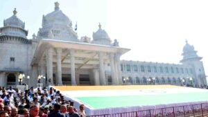 सुवर्णसौधच्या भव्य पायऱ्यांवर मुख्यमंत्री सिद्धरामय्या यांनी जगातील दुसऱ्या क्रमांकाचा सर्वात मोठा खादी राष्ट्रीय ध्वज प्रस्तुत करून त्याचे अनावरण केले.