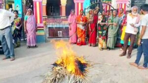 बागलकोट जिल्ह्यातील मदभावी गावात निवासी भागात बार सुरू करण्याच्या निर्णयावरून महिलांनी आक्रमक पवित्रा घेतला आहे. शेकडो महिलांनी एकत्र येत रस्त्यावर दारूच्या बाटल्या पेटवून आपला संताप व्यक्त केला.