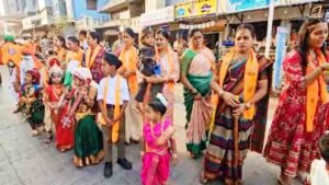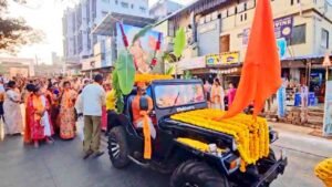 बेळगावच्या महांतेश नगर आणि श्रीनगर परिसरात आज भगवे वातावरण पाहायला मिळाले. हिंदू संमेलन समितीच्या वतीने आयोजित ‘विराट हिंदू संमेलना’च्या निमित्ताने सनातन संस्कृतीची जनजागृती करण्यासाठी भव्य शोभायात्रा काढण्यात आली.