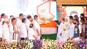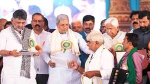 काँग्रेस सरकारला सत्तेत येऊन एक हजार दिवस पूर्ण झाल्याच्या पार्श्वभूमीवर हावेरीत आज ‘साधना मेळावा’ पार पडला. या सोहळ्यात लाभार्थ्यांना जमिनीचे मालकी हक्क प्रदान करण्यात आले, मात्र हा सोहळा केवळ सरकारी कार्यक्रम न राहता भाजप-जेडीएस युतीला दिलेले चोख राजकीय प्रत्युत्तर ठरला.