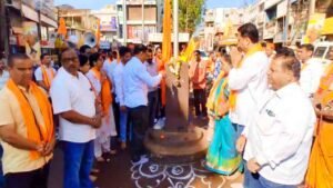 राष्ट्रीय स्वयंसेवक संघाच्या शताब्दी महोत्सवानिमित्त देशातील सुमारे १ लाखांहून अधिक ठिकाणी भव्य हिंदू संमेलनांचे आयोजन करण्यात आले आहे. याचाच भाग म्हणून बेळगावमधील संयुक्त महाराष्ट्र चौक येथे १७ फेब्रुवारी रोजी मोठे संमेलन होणार असून, त्याबाबत जनजागृती करण्यासाठी आज शहरात भव्य बाईक रॅलीचे आयोजन करण्यात आले होते. संयुक्त महाराष्ट्र चौकात हिंदू धर्माचे प्रतीक असलेल्या ‘गरुड ध्वजा’चे आरोहण करून रॅलीला उत्साहात सुरुवात झाली. ‘छत्रपती शिवाजी महाराज की जय’ आणि ‘हिंदू राष्ट्र की जय’ अशा घोषणांनी ही रॅली पुढे मार्गस्थ झाली.