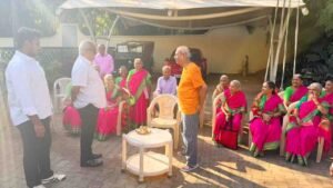 प्रतिष्ठित पद्मश्री पुरस्कार मिळाल्याबद्दल डॉ. प्रभाकर कोरे यांचा शांताई वृद्धाश्रमातील ज्येष्ठ नागरिकांनी आज सकाळी त्यांच्या निवासस्थानी भेट घेऊन सत्कार केला. माजी महापौर तथा संस्थेचे कार्याध्यक्ष विजय मोरे यांच्या नेतृत्वाखाली झालेल्या या भेटीत वृद्धाश्रमातील आजी-आजोबांनी डॉ. कोरे यांना पारंपरिक पद्धतीने आरती ओवाळून शुभेच्छा दिल्या. समाजमनातील विविध क्षेत्रांत डॉ. कोरे यांनी दिलेल्या अनुपम योगदानाचा गौरव करत, हा सन्मान संपूर्ण बेळगाव जिल्ह्याचा अभिमान असल्याची भावना ज्येष्ठांनी व्यक्त केली.