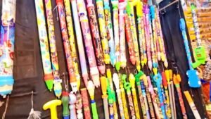 रंगांचा सण असलेल्या होळीसाठी बेळगाव शहर सज्ज झाले असून बाजारपेठेत सणाचे वातावरण आहे. शहरातील प्रमुख व्यापारी मार्गांवर विविध प्रकारचे रंग आणि आकर्षक पिचकाऱ्या दाखल झाल्या असून, नागरिक आवश्यक साहित्याच्या खरेदीसाठी गर्दी करत आहेत.