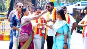 राज्यात हिंदी भाषेची सक्ती केली जाणार नाही, या कर्नाटक सरकारच्या निर्णयाचे स्वागत करत ‘करवे’ (शिवरामगौडा गट) कार्यकर्त्यांनी सोमवारी बेळगावमधील चन्नम्मा चौकात जल्लोष केला.