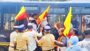 राणी चन्नम्मा चौकात आंदोलकांनी गोंधळ घालत कायदा-सुव्यवस्थेचा प्रश्न निर्माण केल्याने पोलिसांनी तातडीने कारवाई केली. पोलिसांनी या आंदोलकांना ताब्यात घेऊन व्हॅनमध्ये कोंडले, ज्यामुळे आंदोलनाचा फज्जा उडाला. मूठभर कार्यकर्त्यांच्या उपस्थितीत झालेल्या या आंदोलनामुळे प्रशासनाला वेठीला धरण्याचा प्रयत्न करण्यात आला असून शांतता बिघडवून भाषिक तेढ निर्माण करणाऱ्या कन्नड संघटनांच्या अशा कार्यकर्त्यांवरच कायदेशीर कारवाई व्हावी अशी मागणी आता होत आहे.