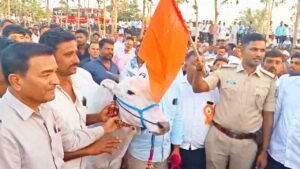चिक्कोडी तालुक्यातील बेळकुड गेट येथील लक्ष्मीनगरमध्ये लक्ष्मीदेवीच्या जत्रेनिमित्त आयोजित करण्यात आलेल्या भव्य बैल प्रदर्शनाने सर्वांचे लक्ष वेधून घेतले. या प्रदर्शनात विविध भागांतील देखण्या आणि धिप्पाड बैलांना पाहण्यासाठी शेतकऱ्यांनी मोठी गर्दी केली होती.