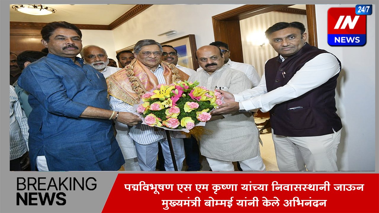 पद्मविभूषण एस एम कृष्णा यांच्या निवासस्थानी जाऊन मुख्यमंत्री बोम्मई यांनी केले अभिनंदन