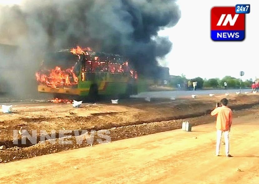 हत्तरगी टोल नाक्याजवळ बर्निंग बसचा थरार ! खाली उतरून पळ काढल्याने बचावले प्रवासी