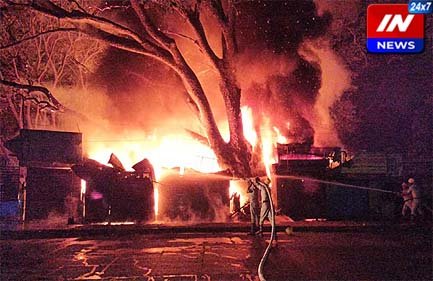 दुकानातील बॅटरीचा स्फोट झाल्याने सहाहून अधिक व्यावसायिक दुकानांना आग लागल्याची घटना बेळगावात घडली.