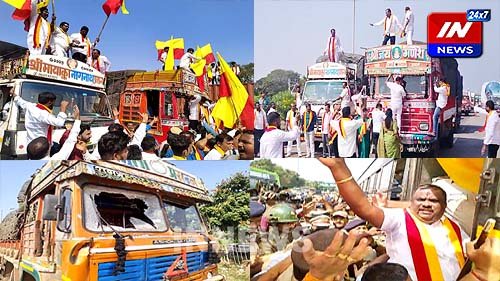 हिरेबागेवाडी टोलनाक्यावर कन्नड रक्षण वेदिकेचा थयथयाट :महाराष्ट्राची वाहने रोखून केली दगडफेक , फासले काळे