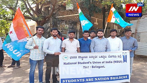 शाळांना भगवा रंग; एनएसयूआयची भाजपविरोधात निदर्शने