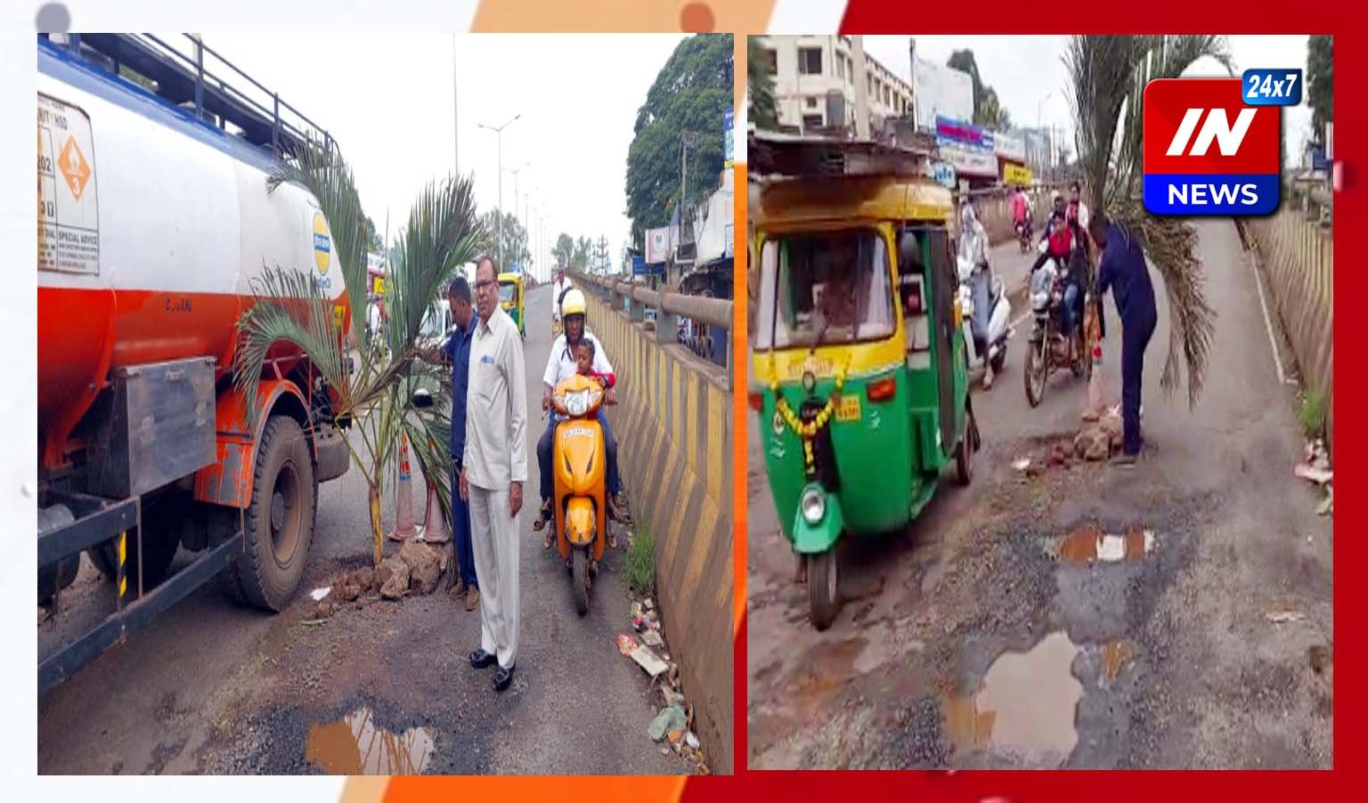 ओल्ड पीबी रोड “मृत्यूचा सापळा”! रस्त्यावर नारळाचे रोप लावून केला निषेध